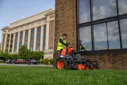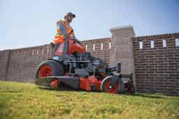 The Kubota SZ26NC-61-2 stand-on mower is built for operators who want speed, control, and comfort in a compact, maneuverable design. Ideal for growing fleets and professional landscapers, this stand-on mower delivers strong performance with a 26-horsepower engine and responsive handling for tight spaces and demanding jobs. An easy-to-use EFI throttle dial allows for quick adjustments, while smooth, dampened control levers and ergonomic cushion pads help reduce fatigue during long mowing days.