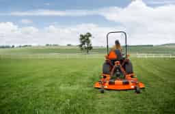 Land Pride Grooming Mowers are a rear-mount alternative to a belly-mount mower for your sub-compact and compact tractor. With three fixed blades and a floating 3-point hitch, these mowers give you a clean cut in fescue and other turf-type grasses. The tapered rear discharge directs debris toward the ground eliminating the need for chains which provides for a more even distribution of clippings.