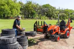 Land Pride’s economy Pallet Fork, the PFL1242, is a 1,200 lb. capacity fork, specifically designed for sub-compact and compact tractors. The unit weighs in at just 220 lbs and forks on the model are class I, 1.25″ x 3″ x 42″. The 5-position rail allows the user to set forks in a variety of widths and are held in place by a spring-loaded toggle. For safety, the back guard is 3/16″.